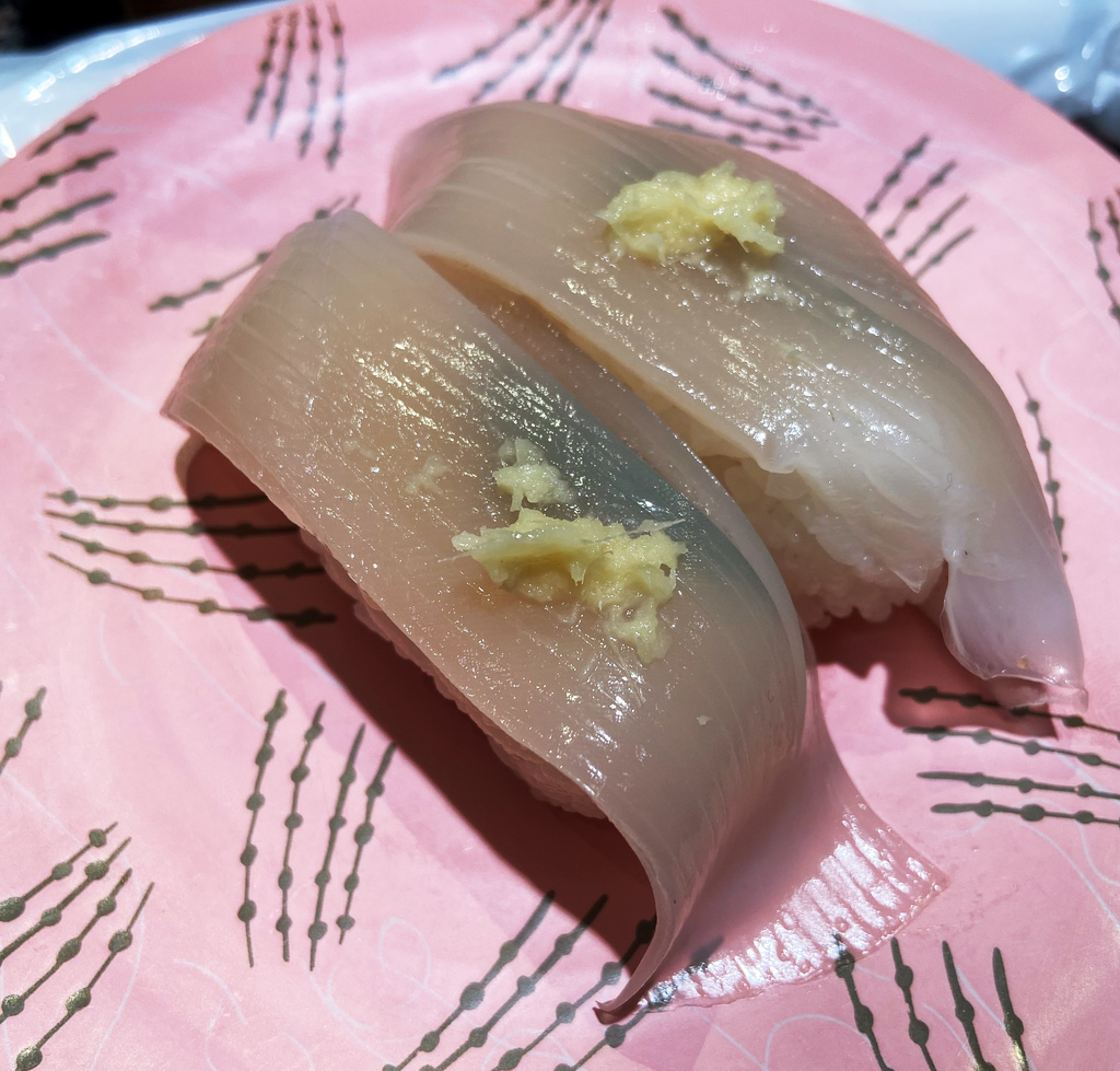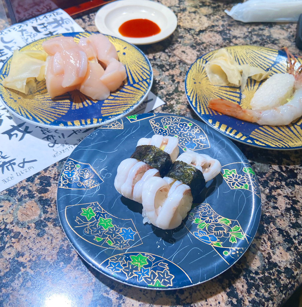 有些雖然有翻譯但是還是搞不清楚而且字好小有點難找,我們點了雙層生干貝壽司(直接寫生ホタテ也可以),墨魚脚握壽司 ( いかげそ握り ),生蝦海鮮都很甜也很新鮮